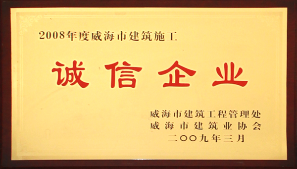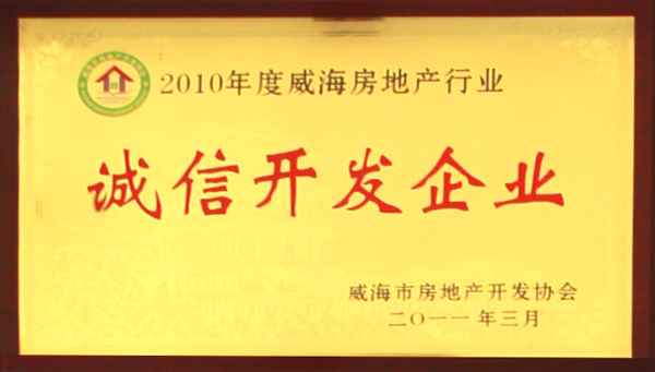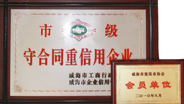 公司連續(xù)八年榮獲威海市“誠信開發(fā)企業(yè)”、“建筑施工誠信企業(yè)”,連續(xù)九年被評為威海市級“守合同重信用企業(yè)”,多次被評為威海市“市級文明單位”、“質(zhì)量管理先進(jìn)企業(yè)”、 “安全管理先進(jìn)企業(yè)”,乳山市“優(yōu)秀企業(yè)”、“先進(jìn)民營企業(yè)”、“納稅明星企業(yè)”,在社會上逐步樹立了誠信、穩(wěn)健的企業(yè)形象。